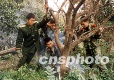 重慶市奉節(jié)縣十二月組織人員砍伐三峽庫區(qū)內(nèi)的廣柑林,以在既定時間內(nèi)完成三峽庫底清理任務。作者:李中全