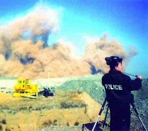 11點30分,爆破總指揮宣布一切正常。爆破現(xiàn)場第一次警報響起。爆破現(xiàn)場值勤民警開始檢查是否還有人員在爆破區(qū)域內(nèi)停留。一切在爆破區(qū)域內(nèi)的人員撤離至安全地點。16個爆破觀測點開始觀測。