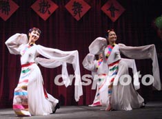 渥太華中國(guó)大專(zhuān)校友會(huì)等八家華人社團(tuán)二十八日晚舉行慶祝新年聯(lián)歡會(huì)。圖為當(dāng)?shù)厝A人自編自演的西藏舞蹈《凈土》。作者:蒲力