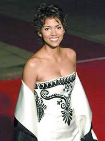 黑美人在007新片《明日再會》的首映禮上,儀態(tài)萬方,白色的絲綢本來就非常亮眼,再加上她的膚色及黑色的花紋,搭配得非常雅致,實(shí)在是上佳之作。