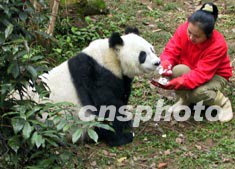 今天是二00三年的第一天,連日來的陰雨天氣被一早就灑下的柔和冬陽一掃而光。古木參天、綠竹猗猗的福州熊貓世界,沐浴著金雨般的陽光,顯得分外妖嬈,洋溢著一派喜氣。數(shù)百名海內(nèi)外各界人士在一片歡樂的軍號(hào)鼓樂聲中,為高齡達(dá)二十七歲的大熊貓“青青”和二十三歲的“巴斯”祝賀新年。