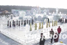 圖:凈月潭冰雪雕作品《國際象棋》
