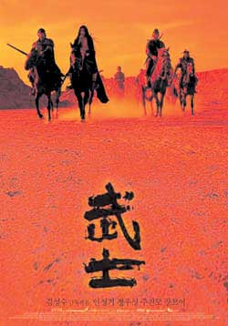 《武士》是一部由中韓影星聯(lián)手打造的古裝動(dòng)作巨片。該片以詩史般的手法講述了明朝芙蓉公主(章子怡飾)被元軍劫持后,又被高麗人(鄭宇盛、朱鎮(zhèn)模飾)救出所引發(fā)的一段如泣如訴的感人故事。本片曾以其宏大的氣勢和精彩的武打場面在韓國獲得驚人票房,躍入當(dāng)年韓國影片排行榜前三行列。
