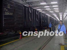 一月七日粵海鐵路火車輪渡將正式開通,今天在最后的試運行中,鐵道部領(lǐng)導(dǎo)親自見證了火車開進粵海鐵巨大的船艙。關(guān)向東 攝