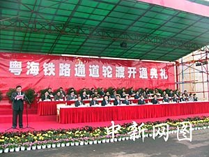 今天上午,中國(guó)鐵道部、廣東省和海南省舉行了隆重的通車(chē)儀式。中共中央政治局常委、國(guó)務(wù)院副總理吳邦國(guó)以及鐵道部、交通部、經(jīng)貿(mào)委、廣東、海南的領(lǐng)導(dǎo)在?诖a頭等候輪渡靠岸,并頻頻向火車(chē)輪渡招手。