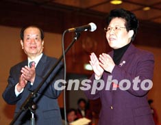 國(guó)務(wù)院副總理錢其琛八日在北京會(huì)見“全國(guó)僑辦主任會(huì)議”的與會(huì)代表,新任國(guó)僑辦主任陳玉杰(右)參加了會(huì)見。作者:滿會(huì)喬