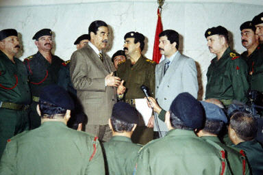 圖:伊總統(tǒng)薩達姆接見共和國衛(wèi)隊高級將領(lǐng)