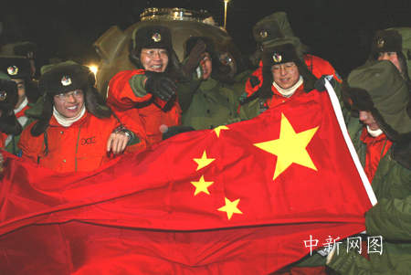 2003年1月5日,返回艙成功著陸,著陸場(chǎng)內(nèi)一片歡騰景象。孫陽(yáng) 攝