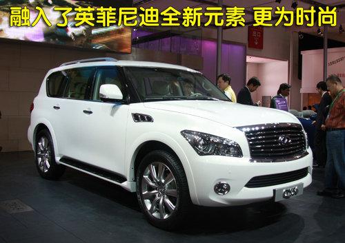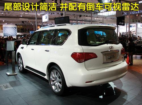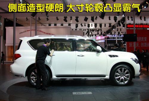 近年來SUV車型持續(xù)火爆,各廠商陸續(xù)推出新的車型以增加市場競爭力。同時(shí)性能強(qiáng)悍,寬大舒適的大型SUV,也得到了一些具有獨(dú)特品位喜歡運(yùn)動(dòng)且資金富裕消費(fèi)者的最愛,因此大型豪華SUV市場也受到了不少消費(fèi)者的關(guān)注。英菲尼迪是日系高端品牌中最具有藝術(shù)氣息的,今年在北京車展上就展出了全新一代的QX56,QX56作為一款7座豪華SUV車型,一經(jīng)推出就立刻受到了的中國消費(fèi)者的關(guān)注。近日我們從英菲尼迪4S店銷售人員處獲悉到,全新的英菲尼迪QX56將于今年9月份到店,預(yù)計(jì)售價(jià)160萬元左右。銷售人員還表示,目前各4S店均已開始接受預(yù)定,訂金10萬,第一批車主將于10月份提到現(xiàn)車。下面就讓我們回顧一下,在2010北京車展上見到的英菲尼迪QX56。