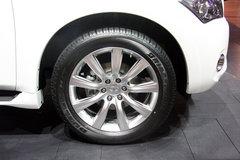 來到車身側(cè)面我們更加會(huì)覺得QX56的龐大,整體造型圓潤,沒有多余的線條作為修飾,但是反而會(huì)讓人感到車身很厚實(shí)。無鑰匙進(jìn)入也毫無懸念的裝配在了QX56身上,兩側(cè)翼子板上的散熱孔并非形同虛設(shè),而是告訴我們它裝載了一臺(tái)V8 5.6升汽油發(fā)動(dòng)機(jī)。其次英菲尼迪慣用的大尺寸輪轂同樣被裝到了這款新車上,22寸9幅造型的鋁合金輪轂使我不得不說很有氣勢,與之搭配的是普利司通275\50 R22輪胎,抓地力應(yīng)該相當(dāng)不錯(cuò)。