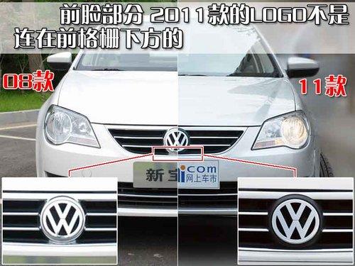 在正面特征上,新寶來2011款的前臉部分需要仔細(xì)觀察才能夠看出其中的變化。如上圖所示,2011款新寶來中網(wǎng)位置的大眾車標(biāo)下方與中網(wǎng)并不相連,而2008款的新寶來在同樣位置則是與中網(wǎng)下方相連接的。