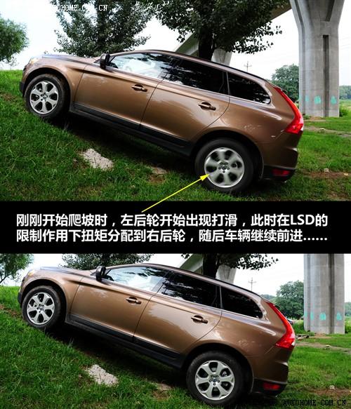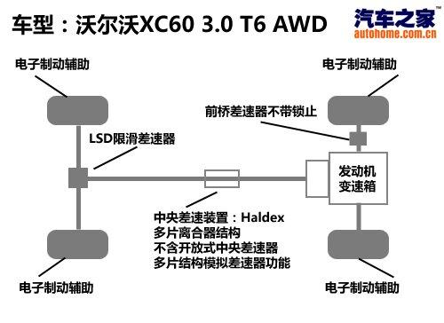 XC60是一臺偏重城市駕駛的車輛,不過作為一臺SUV,它也具備一定的野外行駛能力,該車配備了瀚德公司生產(chǎn)的第三代Haldex四驅(qū)系統(tǒng),具有多片離合器的中央分動(dòng)裝置且在后橋上具有有LSD限滑差速器,配合電子輔助系統(tǒng)進(jìn)行工作,對于難度不是太大的越野項(xiàng)目通過能力還是不錯(cuò)的,電子系統(tǒng)制動(dòng)的效果也很明顯。