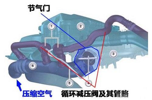 節(jié)氣門前方設(shè)計有循環(huán)減壓閥