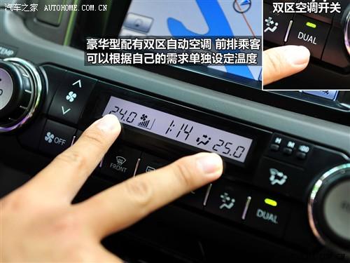 中間的液晶屏為觸摸式設(shè)計(jì),相比那些旋鈕和搖桿操作更加直觀簡(jiǎn)單,而其功能也很豐富,導(dǎo)航、藍(lán)牙電話,DVD播放等功能一應(yīng)俱全。液晶屏下方的是空調(diào)控制區(qū),普拉多采用雙區(qū)自動(dòng)空調(diào),主副駕駛可以分別調(diào)節(jié)自己需要的溫度。