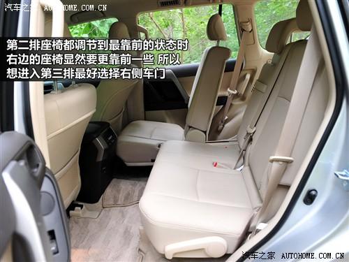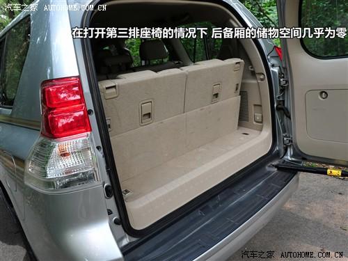 在打開第三排座椅的情況下,普拉多后備廂的儲物空間已經(jīng)近乎于零了,所以滿載7人之后,應(yīng)該趕快把第三排座椅收回去,不會?請看上圖。收起第三排座椅同樣是兩步,先摳起座椅旁邊的機(jī)關(guān),椅墊就可以自動收回了,然后再摳起椅背上的開關(guān),放倒椅背就可以恢復(fù)如初了。