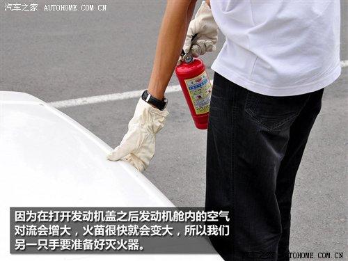 步驟三:發(fā)動(dòng)機(jī)蓋打開(kāi)后由于空氣對(duì)流增強(qiáng),火苗會(huì)迅速變大,這時(shí)我們不能驚慌,拿著滅火器沖著發(fā)動(dòng)機(jī)艙亂噴,在保證自己安全的情況下,盡可能地將滅火器的噴射口接近并對(duì)準(zhǔn)著火點(diǎn)進(jìn)行噴射,同時(shí)呼救其他車型的援助(因?yàn)檐囉玫哪欠N小罐滅火器的容量有限)。