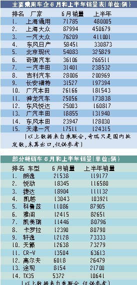 乘聯(lián)會最新統(tǒng)計(jì)顯示,上半年廣義乘用車國內(nèi)銷售累計(jì)達(dá)631萬輛,廣義乘用車批發(fā)銷量累計(jì)達(dá)672萬輛。上海通用以半年銷售48萬輛超越2008年全年的成績,奪得了半程冠軍,但在6月,上海通用7.18萬輛的銷量低于上海大眾的8.8萬輛。