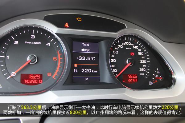 3天半下來總共行駛了563.5公里,油表顯示剩下一大格油,此時(shí)行車電腦顯示續(xù)航公里數(shù)為220公里,兩數(shù)相加,一箱油的續(xù)航里程接近800公里,雖然與理論數(shù)據(jù)有所出入,但以廣州這樣擁堵的路況來看,這樣的表現(xiàn)已值得肯定和認(rèn)同。