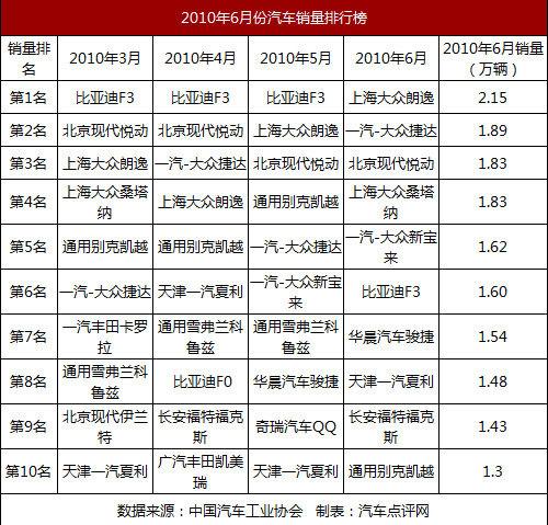 6月份的車(chē)市銷(xiāo)量堪稱(chēng)風(fēng)云突變,從銷(xiāo)量排行榜上來(lái)看,最吸引人眼球的變化還是比亞迪F3的滑落,從蟬聯(lián)多月第一名、到一落第6名,讓自主車(chē)型的支持者難免有幾分唏噓;而上月的第二名上海大眾朗逸,也自然上升一位,占據(jù)了6月銷(xiāo)量冠軍的寶座。