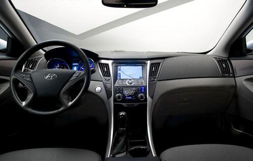坐在現(xiàn)代YF車中,你很難與老款的索納塔車型相結(jié)合,內(nèi)飾變得非常時尚與前衛(wèi),同時也一改老款索納塔的桃木裝飾條,與而代之的則是我們更鐘愛的銀色飾條。中控臺的設(shè)計也十分簡潔,但在配置上十分豐富。除導(dǎo)航、自動空調(diào)等舒適裝備外,全系車型都標準配置了前排正側(cè)氣囊,電子穩(wěn)定控制系統(tǒng),牽引控制系統(tǒng),ABS+EBD電子制動力分配,前部主動型頭枕和輪胎壓力監(jiān)視系統(tǒng)等等。