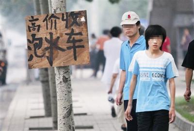 7月13日,在南四環(huán)花鄉(xiāng)橋北側(cè)路邊,一個印著“收購泡水車”的牌子引起了記者的注意。守在旁邊的小販告訴記者,他們專門收泡水車,價格好商量。