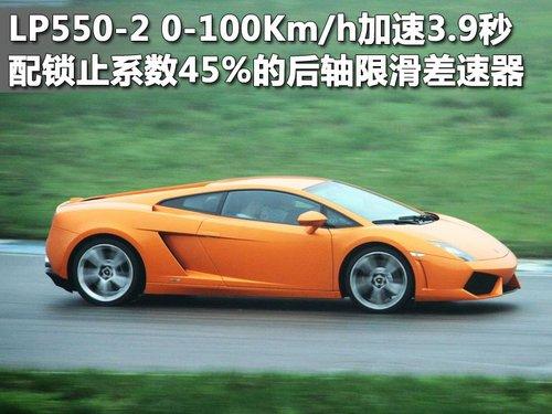 這款Gallardo的“心臟”經(jīng)過(guò)優(yōu)化,更加適合后輪驅(qū)動(dòng)的特性,LP 550-2所搭載的5.2L V10發(fā)動(dòng)機(jī)提供405千瓦(550馬力)的動(dòng)力輸出,配合僅1380千克的凈重,為出色性能提供了可靠保障。 LP 550-2從靜止加速到100公里/小時(shí)(0-62英里/小時(shí))僅需3.9秒,最高速度達(dá)到320公里/小時(shí)。