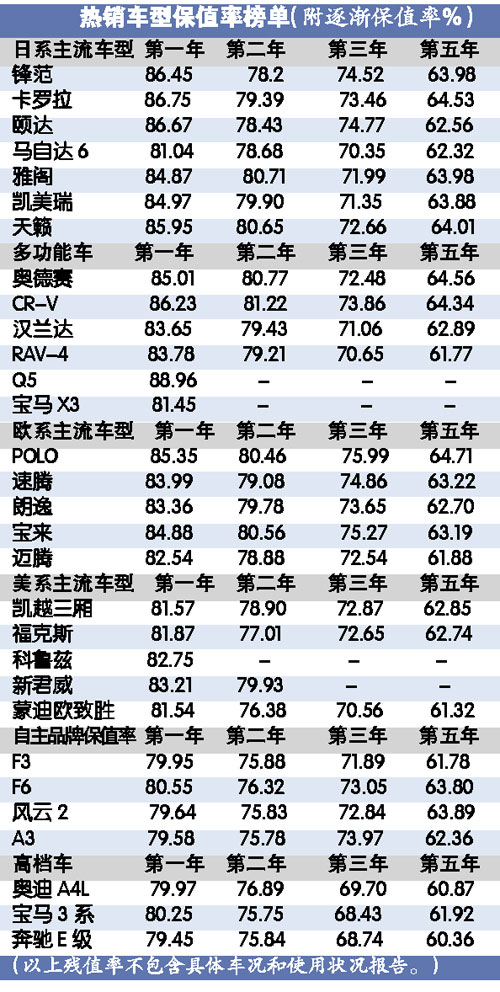 相對(duì)而言,大眾品牌的車型在廣州市場(chǎng)上繼續(xù)保持高保值率的“美名”,尤其以POLO、速騰、寶來、朗逸此類10萬元左右的A級(jí)車保值率最高!