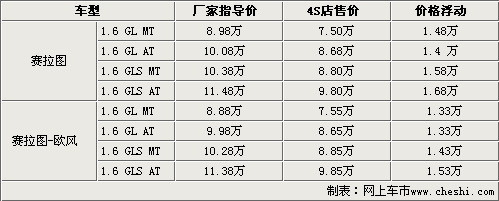 在調(diào)整完售價(jià)后,賽拉圖及賽拉圖歐風(fēng)GL低配車(chē)型的售價(jià)均降到了9萬(wàn)元以下,完全進(jìn)入了自主車(chē)型的售價(jià)區(qū)間。同時(shí)頂配車(chē)型的售價(jià)最高也不過(guò)11.5萬(wàn)。與此同時(shí)更具網(wǎng)上車(chē)市價(jià)格監(jiān)測(cè)系統(tǒng)顯示,在廠家下調(diào)完售價(jià)后,賽拉圖及賽拉圖歐風(fēng)仍有很大的價(jià)格浮動(dòng),最高優(yōu)惠金額高達(dá)1.68萬(wàn)。具體車(chē)型售價(jià)見(jiàn)下表: