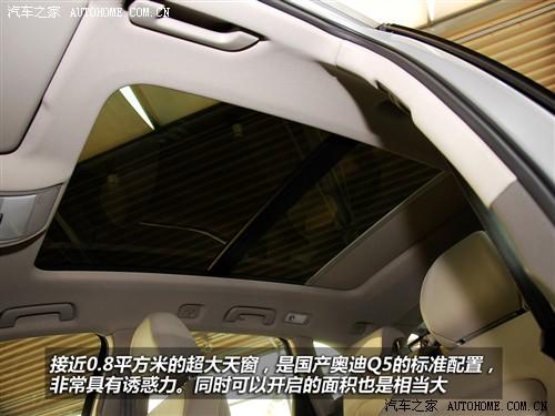 說到Q5的全景天窗,在前些天我們剛做過的全景天窗對比文章里,Q5的天窗以超大的面積和打開面積獲得了理所當然的第一名,這是地地道道的全景天窗,前后中間沒有橫梁,通透到底。前半部分可以完全打開,通風狀態(tài)時前半截會向后翹起一點,形成一個開口,起到換氣的作用。對于偏感性的消費者來說,這是一種致命的吸引。