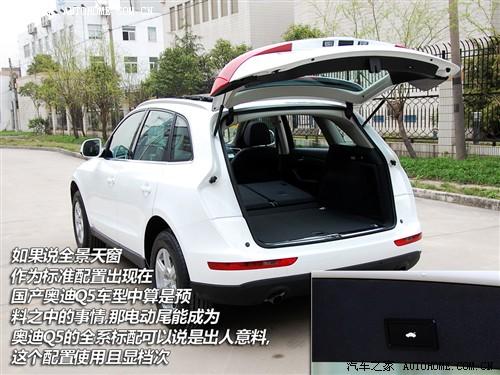 整體來看,國產Q5除了最低配車型的配置明顯太低以外,其他三款車型的配置還是不錯的,都配有真皮座椅、前排加熱、自動氙燈、感應雨刷等,MMI系統和并線輔助功能只出現在高配兩款車型上還是能夠理解的,但最令人不能容忍的是最低配車型竟然連后排空調出風口都沒有,定速巡航也不是標配,要知道在一些自主品牌的緊湊型車上定速巡航都成為了標準配備,豪華品牌實在沒必要為了拉開低配與高配的距離而舍掉這種配置。