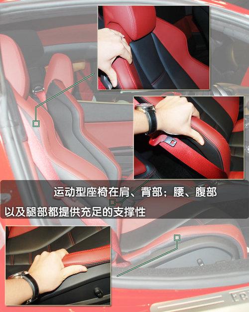 458Italia的兩只座椅“最大限度”的兼顧了舒適性,至少我認(rèn)為它們坐上去還算非常舒服。盡管較深的凹槽以及較硬的座椅填充物都是為極限駕駛而衍生的設(shè)計(jì),但是舒適性還算不錯(cuò)。同時(shí)它的肩部、腰部以及腿部支撐也會(huì)比大部分跑車或是超級(jí)跑車來的更加堅(jiān)實(shí)。