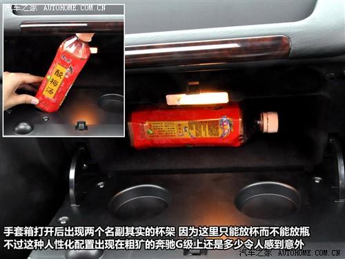 然而一向粗枝大葉的奔馳G級(jí)也有考慮細(xì)致的一面。打開手套箱,放平的手套箱蓋就是一個(gè)可以放兩個(gè)杯子的托盤,為旅途時(shí)的小憩提供了方便。