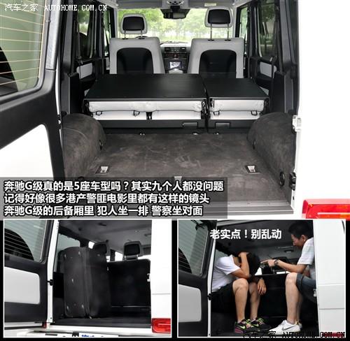 除了能載物外,奔馳G級后備廂兩邊的凸起正好可以坐下每邊兩個人,不過這樣上路可是法律所不允許的,所以像上圖那樣警察押送犯人的情景還是僅限于靜態(tài)比較好。而當掀起整個后排座椅后,寬大的后備廂足以運載冰箱或洗衣機這類的大件物品,出色的垂直空間也使物品的高度不再受太多的限制。