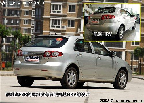 比亞迪F3的前臉與花冠也十分相似,大燈的形狀做了些小小的修改,尾燈則與上一代本田飛度三廂版的十分相像,個人覺得這款尾燈似乎與整體的平和中庸風(fēng)格并不太搭調(diào),只是看的時間長了已經(jīng)習(xí)慣了。除此之外,F(xiàn)3的兩廂車型F3R的尾部造型也與上海通用別克已經(jīng)停產(chǎn)的凱越HRV具有九成的相似。