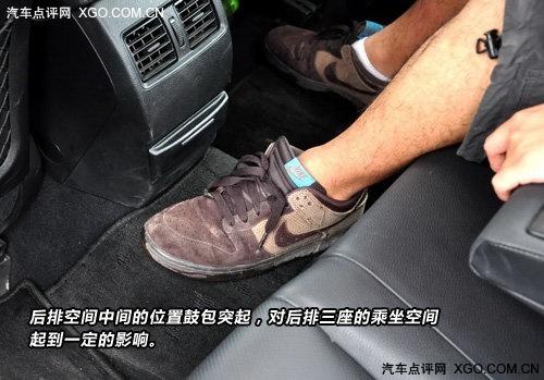 雖然座椅柔軟舒適,空間寬大,座椅中央也有頭枕,但是對(duì)于后排是三座的空間來說,中間的鼓包一定程度上的影響了乘坐的空間,坐上三個(gè)成年人還是有些勉為其難的。
