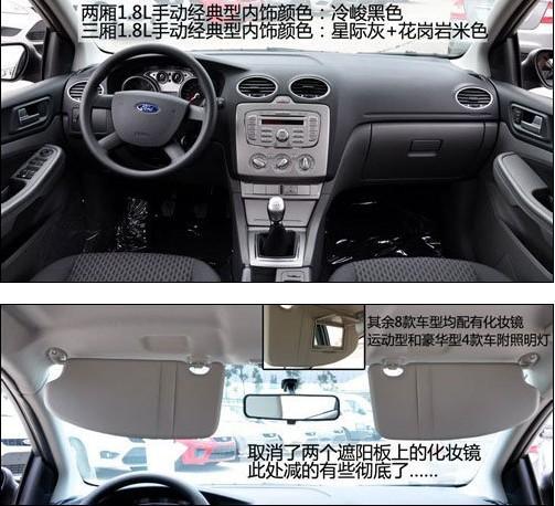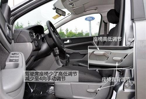 兩廂經(jīng)典型采用黑色內(nèi)飾,而三廂則采用上深下淺的顏色搭配。車內(nèi)最主要的簡配有三項,兩側(cè)遮陽板上的化妝鏡被取消,這是比較影響日常使用的。駕駛席座椅減掉了高度調(diào)節(jié)功能,變?yōu)?向手動調(diào)節(jié)。安全配置上前排側(cè)氣囊被取消,只剩下主副駕駛正面的兩個氣囊。
