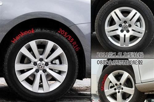 寶來此次改款的重點是動力和內(nèi)飾,所以只對外觀進行了細微的改變。比較明顯的變化來自輪轂,新寶來1.6L車型和1.4T車型都使用了全新樣式的輪轂,相比08款簡單的5幅輪轂,2011款的兩種5組10幅輪轂顯得更加動感。