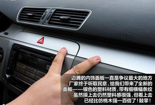 2011款邁騰的內(nèi)飾在形式上和老款沒有太大區(qū)別,不過在做工用料上卻有著不小的提升。從上邊的小圖也可以看出,邁騰明顯將自己的內(nèi)飾精致化了,中控銀色飾板,啞光車門拉手以及車內(nèi)多處的鍍鉻裝飾都起到了提升內(nèi)飾質(zhì)感的作用。