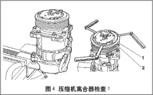 。4)空調壓縮機離合器。當駕駛員選擇A/C模式時,空調系統(tǒng)ECU使壓縮機離合器的線圈搭鐵,觸點閉合,電流通過離合器線圈,使離合器結合,帶盤帶動壓縮機轉動。