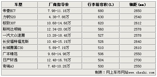 如今,在選購家用經(jīng)濟(jì)型轎車的時(shí)候人們往往關(guān)注這樣幾個(gè)方面,外觀設(shè)計(jì)、空間、配置以及舒適度。當(dāng)然,價(jià)格是排在這些因素前面的。所謂空間,一般指駕乘空間、儲(chǔ)物空間和行李箱空間。很多車在滿足了駕乘空間后,不得不舍棄一定的行李箱空間。家用車的主要用途一般就是上下班代步、平時(shí)購物以及外出游玩。駕乘空間自然是一個(gè)很重要的方面,但是,在駕乘空間相同的前提下,能夠提供更充足的行李箱空間,也是一款合格的家用轎車的衡量標(biāo)準(zhǔn)。