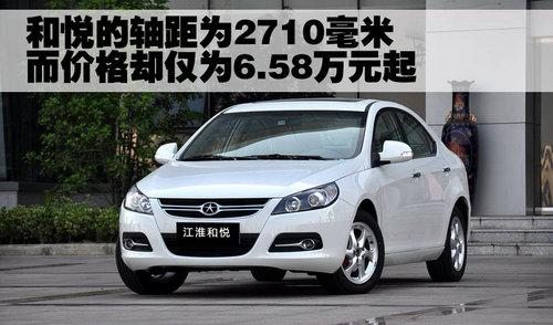 江淮和悅定位于家用經(jīng)濟(jì)型轎車,整車的尺寸達(dá)到了B級(jí)轎車的標(biāo)準(zhǔn)。和悅整車長(zhǎng)為4590毫米、寬度為1765毫米、高度為1465毫米,整車軸距達(dá)到了2710毫米,使后排的乘坐空間非常寬綽。另外,和悅?cè)龓男欣钕淇臻g也非常大,可以滿足家用各種承載需求。