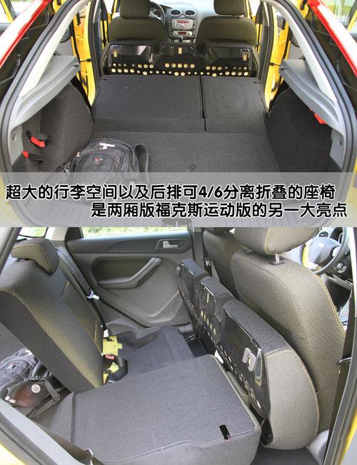 2011款?怂箖蓭\(yùn)動(dòng)型后排座椅可以6/4分離折疊,將坐墊完全提起后可以完全放平,方便裝載大體積的物品。后排座椅完全放倒后,行李倉(cāng)容積由385L擴(kuò)展至1245L。