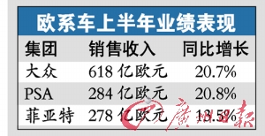 據(jù)統(tǒng)計,大眾汽車集團銷售收入升至618億歐元,同比增長20.7%。另一家歐洲汽車巨頭標(biāo)致雪鐵龍也發(fā)布了半年業(yè)績,集團凈利潤為6.8億歐元,上半年營業(yè)額增長20.8%;日常營業(yè)利潤提高至11.37億歐元,而去年同期虧損 8.26億歐元。(劉俊)