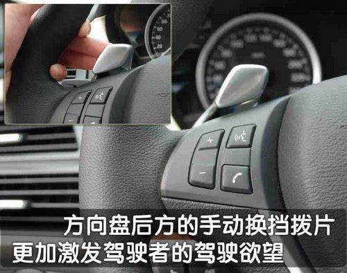 寶馬X6是其X系列中唯一標(biāo)準(zhǔn)配置帶換檔撥片方向盤(pán)的車(chē)型。由于換擋撥片集成在方向盤(pán)上,所以無(wú)論方向盤(pán)處于什么位置,駕駛者都可以用換檔撥片平滑而舒適地進(jìn)行升降檔。用方向盤(pán)上的多功能按鈕還可以快速操縱電話和音響系統(tǒng),使駕駛者將注意力集中于駕駛,駕駛者還可以根據(jù)個(gè)人偏好對(duì)方向盤(pán)上的兩個(gè)按鈕進(jìn)行單獨(dú)編程。