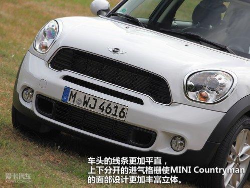 從造型上看,MINICountryman并沒有完全脫離俏皮可愛的設(shè)計(jì)路線,雖然車身尺碼一再放大,但車頭上依舊有些可愛的大燈已經(jīng)很明確的展現(xiàn)了MINI的一大設(shè)計(jì)特征,車外后視鏡也是100%的MINI風(fēng)格。車頭的線條更加平直,不過你絕不會用硬朗來形容它,上下分開的進(jìn)氣格柵使MINICountryman的面部表情更加豐富立體,即便是充滿動感的CooperS,也不會在引擎蓋上開一個(gè)通風(fēng)口,而是比較含蓄的放在了上下進(jìn)氣格柵之間。