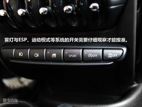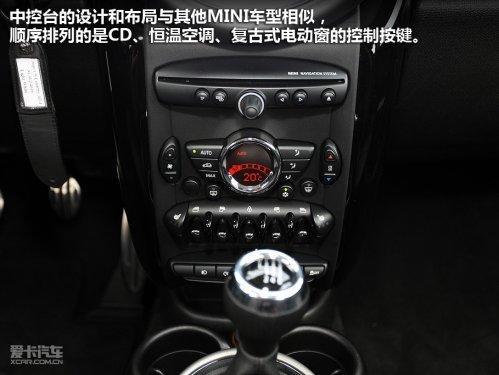 中控臺的設(shè)計和布局與其他MINI車型相似,從上而下順序排列的是CD、恒溫空調(diào)、復(fù)古式電動窗的控制按鍵,最下面一排的位置則有些別扭,霧燈與ESP、運動模式等系統(tǒng)的開關(guān)需要仔細(xì)觀察才能按準(zhǔn)。