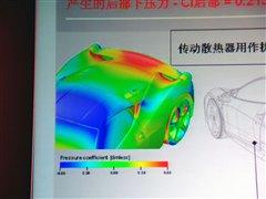 最有設計新意的就是458 Italia前保險杠的擾流板和C柱的進氣口,在法拉利總部經(jīng)過多次風洞試驗后,工程師們設計出可以根據(jù)速度不同而改變前保險杠擾流板,其實原理很簡單就是擾流板的材質為質地稍軟的塑料,當車速達到一定程度后,氣流會改變擾流板的形狀,設計師們研究出它在各種速度下可以變形的角度,從而改變氣流通過大小,可以幫助提高剎車的散熱能力同時還會產生部分的下壓力。