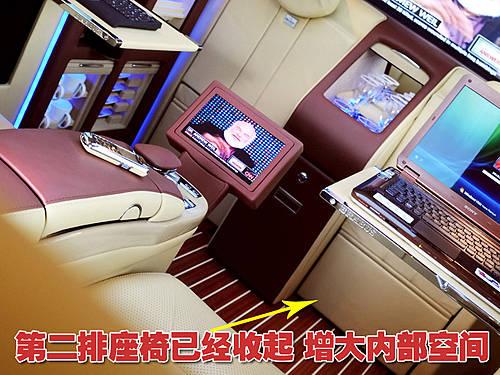 博速改裝廠將其駕駛艙與后排座椅隔開(kāi),而其隔板則放置了較大的32英寸LCD顯示屏,其不僅可以將與筆記本電腦連接起來(lái),同時(shí)還可以用來(lái)顯示車輛周圍的路況。
