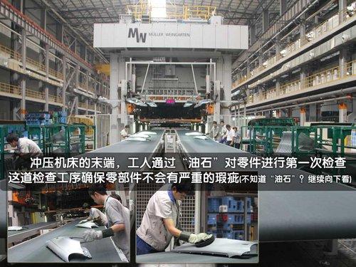 在生產(chǎn)線的中間是工作人員的監(jiān)控區(qū)域,工作人員可以通過監(jiān)視器看到整個(gè)沖壓車間的的生產(chǎn)狀況。而在每一個(gè)沖壓機(jī)床的末端,工人會對每一個(gè)沖壓出來的配件進(jìn)行粗檢。然后由一汽大眾的AUDIT評審專家,對配件進(jìn)行“比客戶更加苛刻”的標(biāo)準(zhǔn),去檢查配件的公益標(biāo)準(zhǔn)。