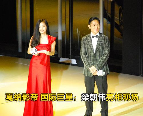 在一段歌舞后,影帝梁朝偉身穿條格西服出現(xiàn)在了舞臺(tái)上,接受了華晨寶馬CEO康思遠(yuǎn)的采訪。朝偉是一位在華人社會(huì)具有影響力的香港著名實(shí)力派演員,因?yàn)槌錾难菁家约霸?jīng)囊括多個(gè)電影獎(jiǎng)項(xiàng)又被傳媒稱為“影帝”。
